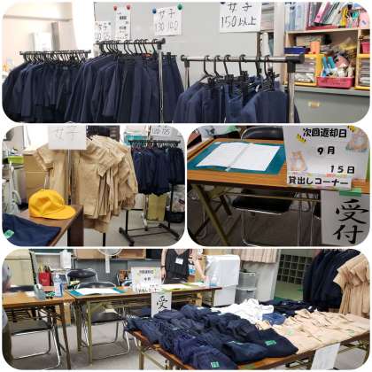 期末個人懇談会の間、PTA人権・図書委員会の方々が桑の実文庫開放と推薦服等のリサイクル活動を行っています。東館2階第2音楽前の桑の実の部屋で行っています。