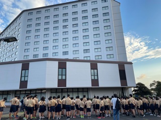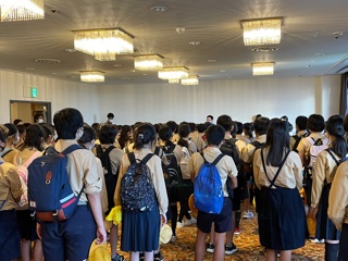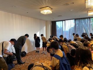 スペイン村を出てすぐにホテルに到着です。開舎式ではホテルの方から温かな歓迎の言葉をいただき、児童代表もしっかりあいさつができました。
