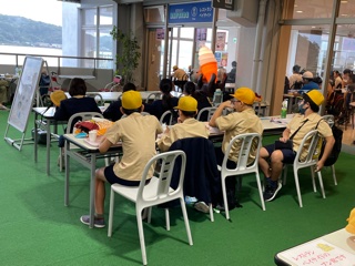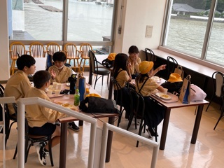 昼食はミールクーポンを使って水族館内のレストランでとります。カレー、うどん、チャーハン、好きなものをいただきます。