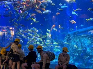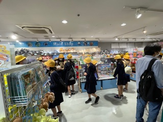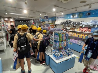 まだおみやげを買いきれていなかった人は、おみやげを見ています。水族館オリジナルのものもあり、楽しそうに選んでいました。