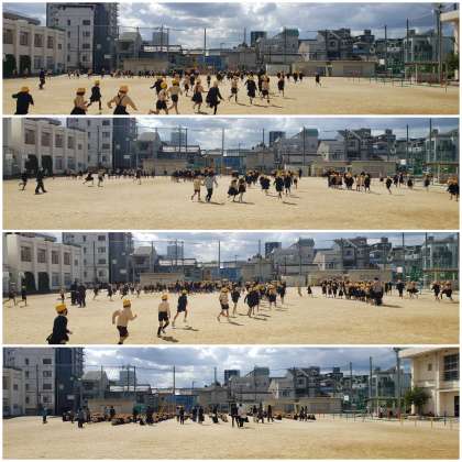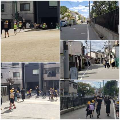 今日は土曜授業の日でした。1、2時間目は各クラスで学習を行い、3時間目は地震が発生したという設定での避難訓練、4時間目は保護者の皆様と連携しての引き渡し訓練を行いました。