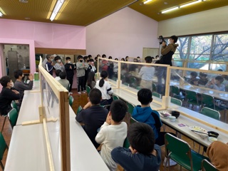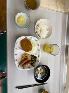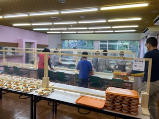 朝の集いでラジオ体操等をした後、朝食です。食事係さんも慣れてきたようです。みんな元気です。