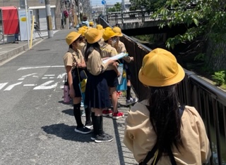 3年生では5月2日と6日、桑津小学校から北の地域と南の地域の2回に分けて校区探検を実施しました。見慣れた街並みも細かく見ていくと新たな発見がたくさんあります。ルールを守りながら校区の様子をしっかり観察することができました。