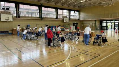 大阪市立心身障がい者リハビリテーションセンターからスタッフの方にお越しいただき、車いす体験をしました。