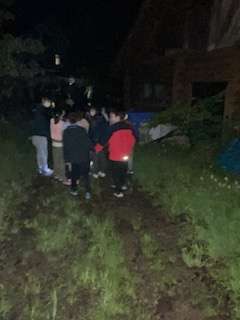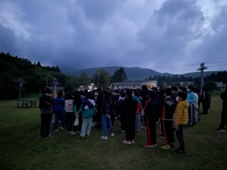 宿舎の方から星のお話をしていただいた後、ナイトウォークをしました。真っ暗な林の中をグループに一つの懐中電灯を頼りに歩きます。大阪ではあまり経験しない暗闇の中で虫の音や風の音に耳をすますことができました。ナイトウォークが終わる頃にはたくさんの星が輝いていました。