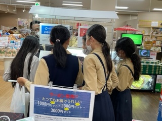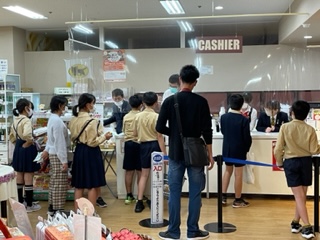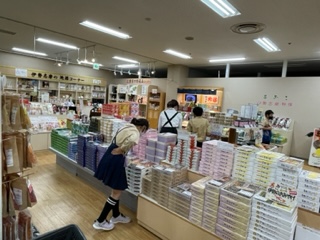 ホテルでもおみやげを買います。おうちの方や友だちを思い浮かべて楽しい買い物です。何を買ったのかな。