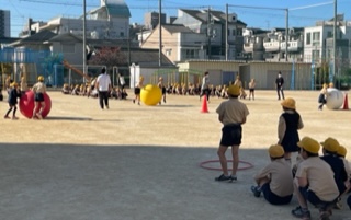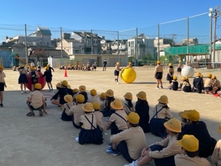 2年4年のペア集会は大玉ころがしをしました。2年生と4年生が2人1組で大玉をころがします。4年生が2年生をカバーしながら協力して進みます。2年生も運動会で行った競技だったので慣れていて、スムーズに進んだペアが多かったようです。