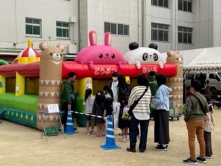 3年ぶりにPTAフェスティバルが実施されました。今年は密になることを避けるため午前午後の2部制にして実施しました。PTAの役員、委員、体育施設開放の各チーム、生涯学習、大阪市スポーツ推進委員等、地域の各組織の皆様方が各ブースや受付等を分担していただき実施することができました。会場は盛況で長い列ができたブースもありました。子どもたちは様々なゲームに夢中になって取り組みました。