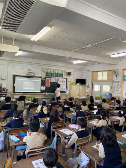 今日は歯科衛生士さんと一緒に歯みがきの大切さについて学習しました。虫歯になりやすいところや、歯みがきしにくいところはどのようにみがけばよいのか、教えていただきました。虫歯のない歯でいられるように子どもたちは、真剣に話を聞いていました。