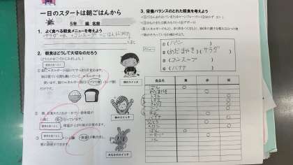 朝食はなぜ大切なのか学んだあとに、栄養バランスのとれた朝食を考えました。