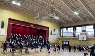 2年生、3年生は感染対策をしながら音楽発表会を行いました。