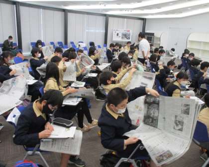 当日付けの新聞を見ながら、新聞社の仕事について学びました。
