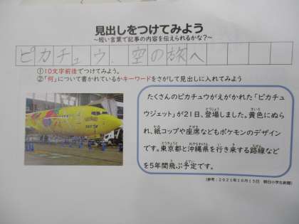 写真を見て記事の見出しを考えたり、紙面のレイアウトを考えたりすることで、新聞の工夫について知ることができました。