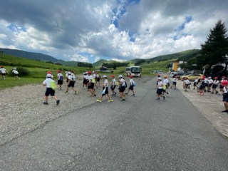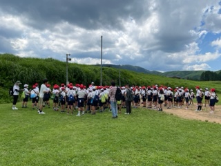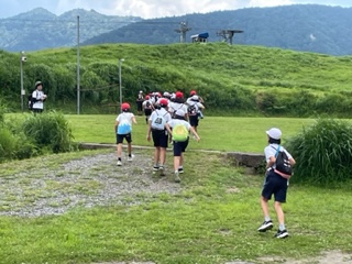 部屋で一息ついたところで着替えて避難訓練をしました。万一の時に備えて避難経路の確認です。宿舎前の広場まで避難します。