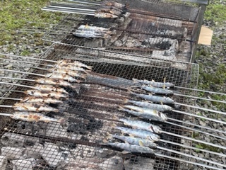 採った魚に串を刺して焼いていただきます。こんがり焼けた新鮮なアマゴはとてもおいしかったです。