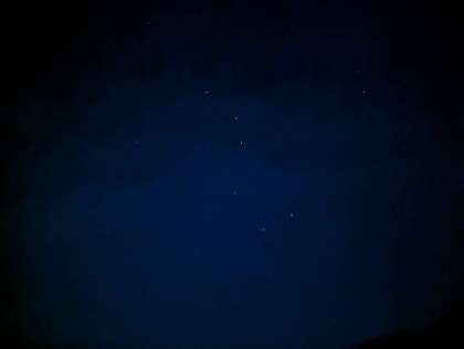 宿舎のスタッフの方が広場で星の話をしてくださいました。始めはうっすらとしか見えなかった星が少しずつはっきりと驚くほどたくさん見えました。写真ではわかりにくいですが、夏の大三角、北斗七星、蠍座など学校で学習した星や星座も見つけることができました。満点の星空が思い出の1ページに加わりました。