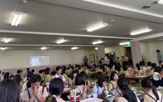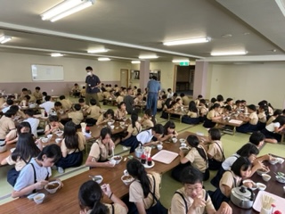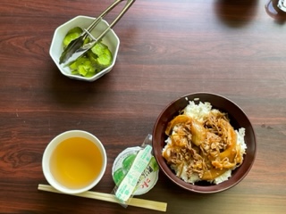 林間学習最後の昼食です。メニューは牛丼、3日間の活動を思い浮かべながらいただきます。