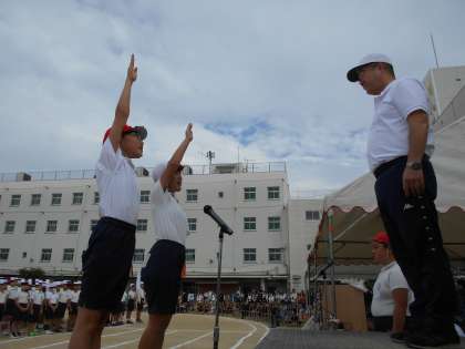 本年度の運動会は半日開催でしたが、4年ぶりに全校児童が一堂に会した運動会ができました。児童は徒競走やリレー、団体競技や団体演技に練習の成果を十分に発揮し、自分の力を精一杯出し切りました。また、高学年の児童は応援団やそれぞれの役割に責任をもって取り組みました。みんなで力を合わせて児童会の運動会目標「みんなの心に残る最高の運動会」ができました。