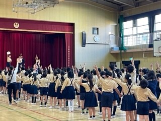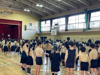 3年生と5年生のペア集会も「虫とりに行こうよ」ゲームをしました。集会委員会の掛け声に合わせて5年生が3年生をうまくリードし、みんなで楽しく活動することができました。