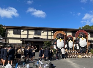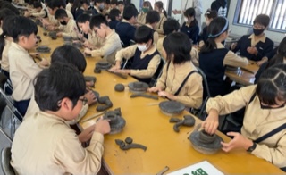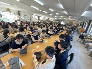 信楽たぬき村に着きました。指導の方の説明を聞いた後、手びねりで作っていきます。みんな集中して取り組み、個性的なお皿やお湯呑み等ができました。手元に作品が届くのは少し先になりますが、楽しみですね。