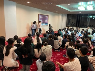 夜のつどいは希望者がいろいろな出し物を披露しました。漫才、クイズ、コント、カラオケ、パントマイムなど多彩な内容で練習して来た成果が出て大盛り上がりでした。