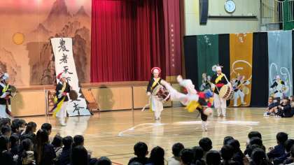今年度の芸術鑑賞会は、劇団ポドルフェの皆さんに韓国伝統芸術を披露していただきました。