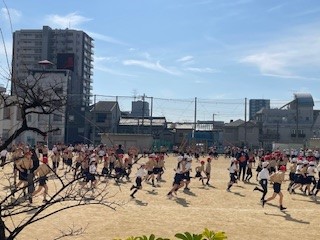 今週は「かけあしタイム」週間です。1・3時限後の休憩時間、奇数学年と偶数学年に分かれて学年ごとのコースで運動場を走ります。競走ではなく自分のペースで走ります。短い時間ですが、走っていると身体がポカポカしてきました。