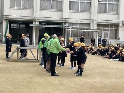 児童代表がお礼の言葉を伝え、各学年の代表からお礼の手紙のプレゼントをお渡ししました。