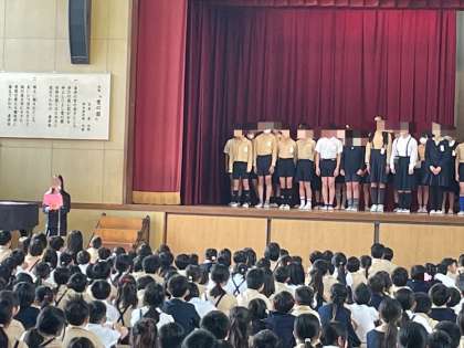 今日は今年度前期の「運営委員会」「委員会の委員長と副委員長」「学級代表」の紹介がありました。