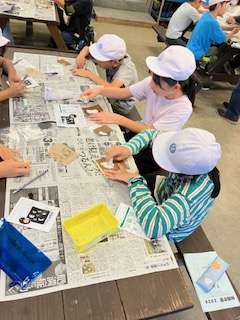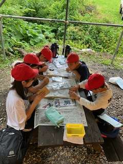 お天気がよくないので 予定を変更して まが玉作りをしています