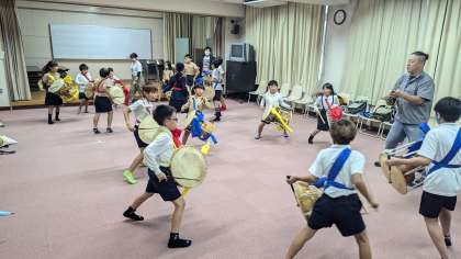 今週も民族音楽会と校内発表会にむけての練習をしました。今日は、楽器に布を通して、立ちながら演奏の練習をしました。活動の後半では、ステップをしながら楽器を演奏する練習にもチャレンジしました!難しくて苦戦している子もいましたが、あきらめずに取り組んでいる姿がとてもすてきでした。