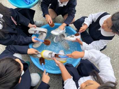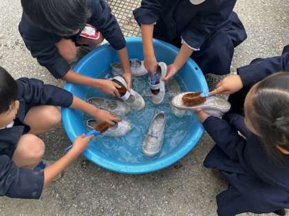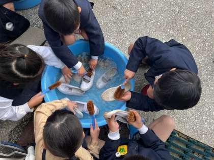 生活科の学習で、上靴洗いをしました。