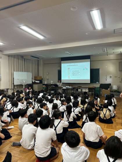 おなかの中のあかちゃんの成長のようすについて学習しました。おへそはおかあさんとつながっていたしるしで、いのちがおなかの中で大切に育てられて誕生したことを知りました。自分たちの成長を支えてくれた人に感謝する気持ちをもち、自分のいのちやまわりの人のいのちを大切にして過ごしてほしいとお話しがありました。最後に、実際に養護教諭のおなかに触れ、おなかの中で成長している命を感じました。