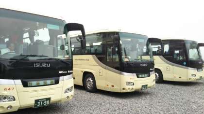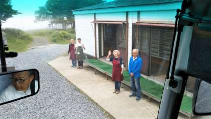閉舎式で宿舎の方々にお礼を述べ、全活動を終えました。13:10一路、桑津小学校に向けて出発しました。