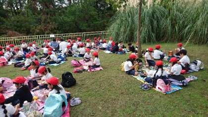 ドングリ探しのあとは、お待ちかねのお弁当です。