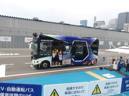 社会見学で、大阪メトロeモビリティタウンへ行きました。班で計画を立て、協力しながら、映像や最新技術が使われた「未来の大阪」や「未来のモビリティ」などを体験したり、大阪・関西万博で走るEV・自動運転バスに乗ったりしました。