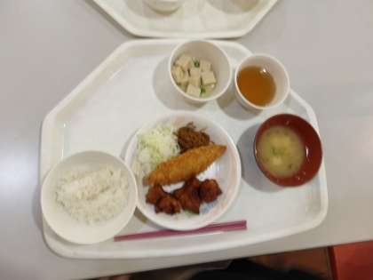 宿舎の夜ご飯。ヨットの後でおなかがすきました。