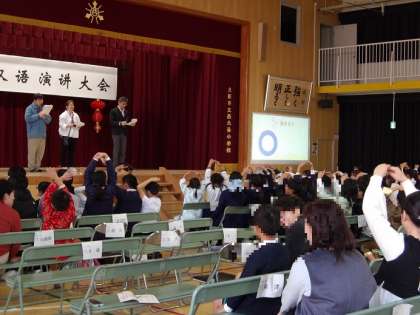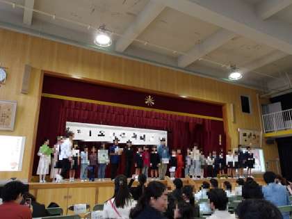 11月1日(土)西九条小学校にて第30回中国語弁論大会が開催されました。中国につながりのある児童らが大阪市全域の小学校から集まり、練習してきた暗唱や朗読・歌などを披露します。桑津小学校からは3年生1名が参加しました。物語群読で他校の子どもたちと一緒に不来梅镇的音乐家(ブレーメンの音楽隊)を暗唱しました。緊張しながらもすらすらと上手に言うことができました。最後は○×クイズを楽しんで、充実した1日になりました。