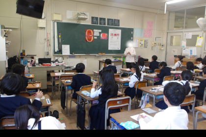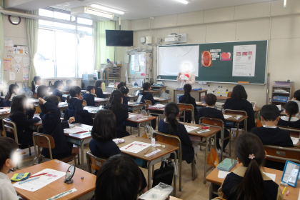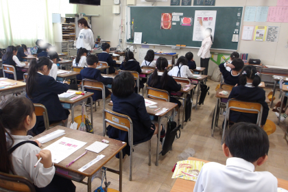 学校歯科医の矢田先生と大阪市教育委員会から歯科衛生士さんに来ていただいて、はみがき指導を行いました。
