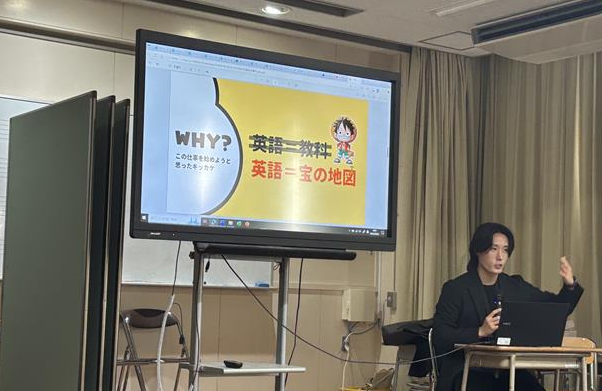 Yotubeで動画クリエイターや、英語コーチングをされているToya さんに来ていただきました。オーストラリアでサッカー選手のご経験や、英語を使うことの魅力をお話しされました。英語が苦手な子も、英語を仕事として活用される方のお話を聞いて、関心している様子も見られました。「仕事=?」の時間では、何名も挙手があがり、「家族のため」「自分の得意を活かすため」「社会の人のため」など、様々な意見を発表することができました。