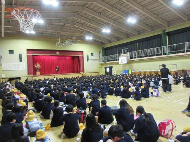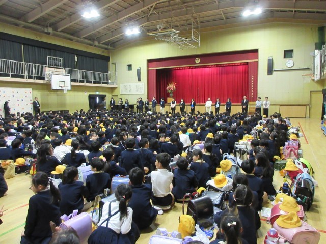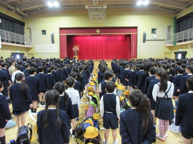 始業式では、校歌を歌って校長先生のお話を聞きました。最後に担任の先生の発表がありました。