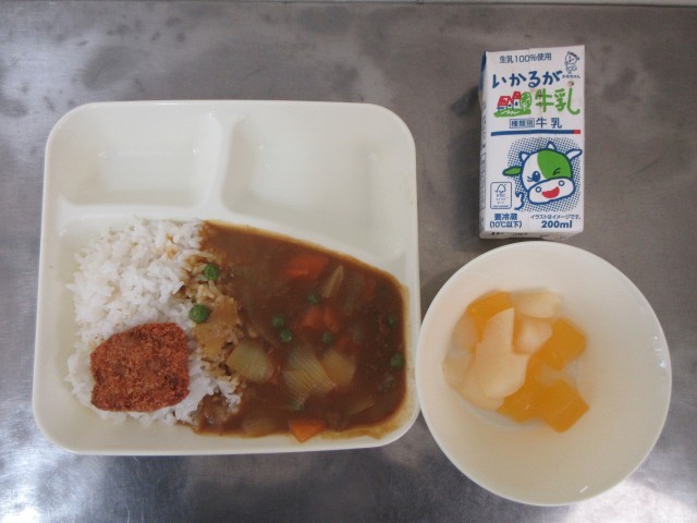 カツカレーライス、フルーツゼリーです。