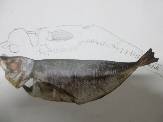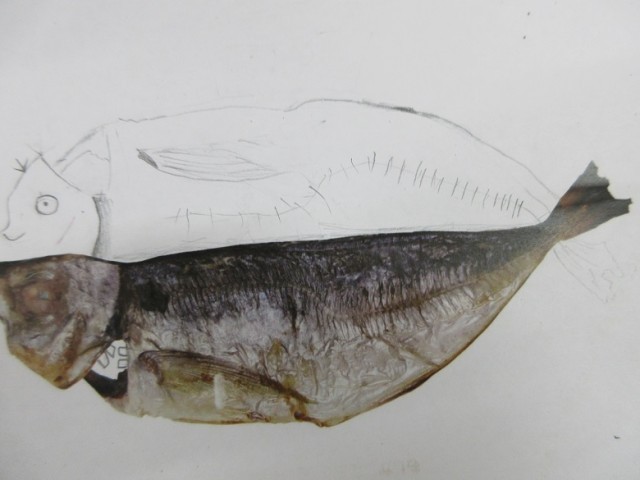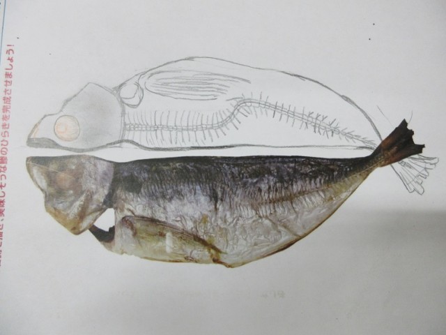 リアルなあじの開きの絵を描いています。