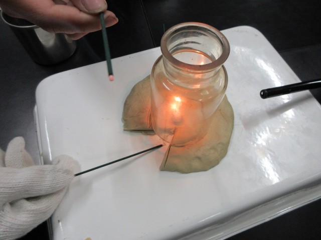 ものが燃えるときの空気の動きを調べ、空気の出入りと燃え方の関係を考えました。
