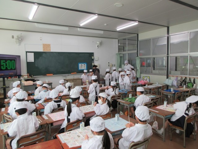 今日から自分たちで給食の準備をしました。
