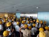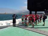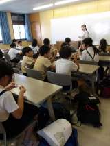 初めてのヨット体験。スタッフの説明を真剣に聞いています。