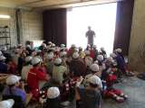 燃え上がった火を囲み、みんなでレクレーションをしました。