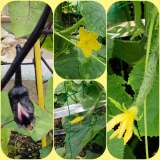 いきもの委員会が栽培しているナスビの小さな実を発見。キュウリも雌花も数個発見。...