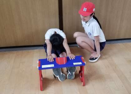 この日取り組んだのは、ソフトボール投げ、立ち幅跳び、50m走、反復横跳び、上体起こし、長座体前屈、握力です。