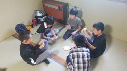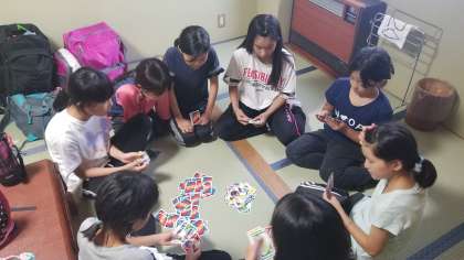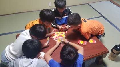 高原遊びを終えて、部屋ではトランプやウノで仲よく遊んでいます。